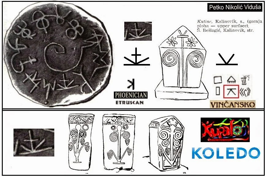 Šta dakle predstavlja  slovo K sa krstom kao znak Strijelca na ovom novčiću sa krugom zodijaka? Predstavlja boga Koleda, srbskog prehrišćanskog boga kraja stare i početkom nove kalendarske godine: stari Koledo umire završetkom stare, a mladi Koledo (Svarožić) rađa se početkom nove kalendarske godine i mladog Koleda Svarožića predstavlja onaj krst u slovu K. To je Svarožićev krst, koji postoji  na mnogim stećcima. Svarožić je zimsko Sunce nakon zimskog solsticija i prvog dana zime  i  ono raste jačajući ka proljetnom Jarilu (Jurju) i ljetnom Kupalu (Svetovidu).