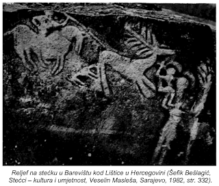 Reljefna slika na stećku dvovjernog krstjanina u Barevištu kod Lištice u Hercegovini je slikovno is-pričana prehrišćanska i hrišćanska simbolika Sun-čevog tog ljetnog prelaska preko kraka Mliječnog puta. Konjanik je Sunce (Svetovid), pas je zvijezda Sirijus u sazviježđu Veliki pas (Canis Major), jelen je sazviježđe Orion. "Kad lovac uhvati jelena, počinje ljeto", tj. kad Sunce dođe do Oriona, počinje ljeto i to se zbiva u večernjim satima krajem aprila i nema Oriona na nebu sve do prvih svitanja početkom avgusta.